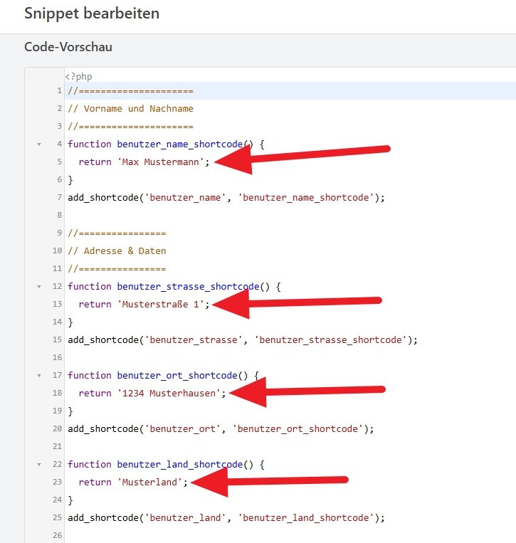 Trage jetzt in jedem Punkt auf welchen die Pfeile zeigen Deine Daten ein. Bitte beachte das diese wirklich richtig sind! Den bei einer Prüfung von der DSGVO wird das gecheckt!